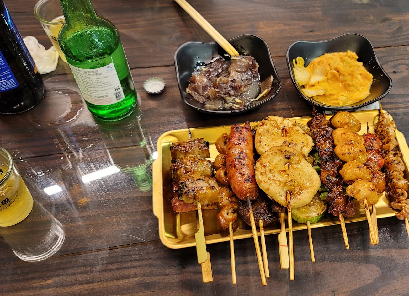 喝酒聊天的好地方, 點餐是自己夾. 夾好先付錢. 食材都是一次烤好才上菜的~所以建議一單就把食材選好, 人多時才不用等~
