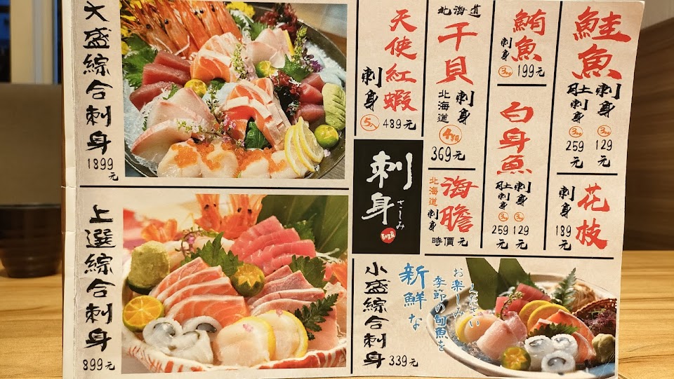 剝皮辣椒牛肉串 松阪豬 綜合刺身 蝦蘆筍手卷