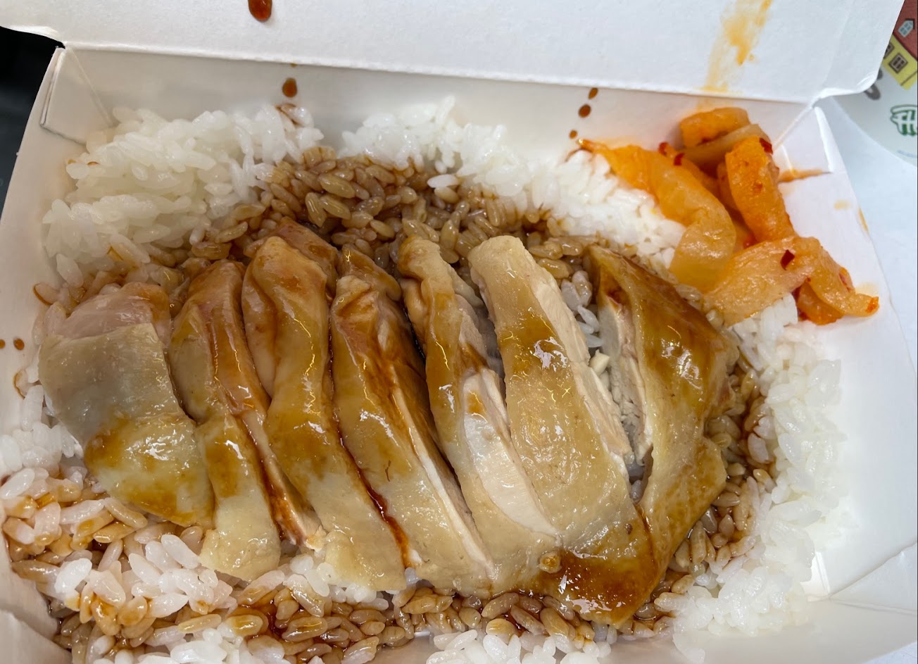 好吃雞肉飯就是如圖中的份量,基本上只有飯跟肉跟一點點菜脯,飯很多所以吃的飽,但價格我覺得有一點點貴,畢竟主要都是飯