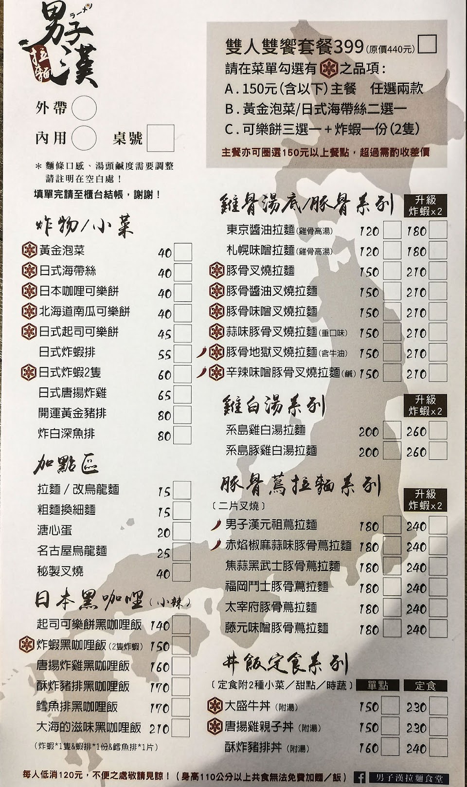 拉麵中上 但看到店員幫我點餐的同時又接電話,心想她會不會點錯餐,沒想到粗麵換細麵真的給我加放錯碗。 再來菜單標示糖心蛋20元,原以為是一顆20,結果竟然是半顆20元,搶錢。