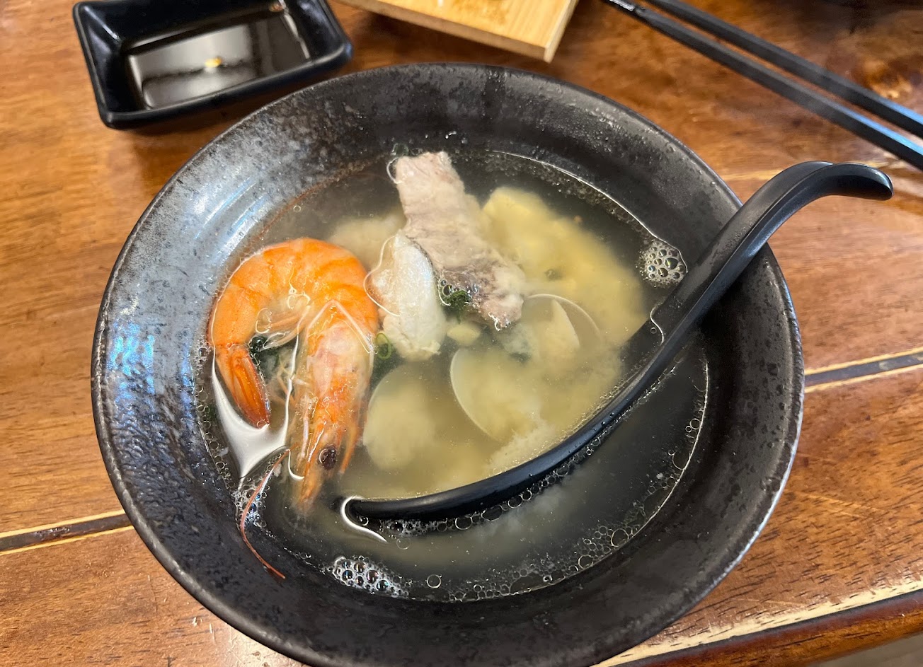 附贈的湯也不馬虎有蝦跟魚肉喔