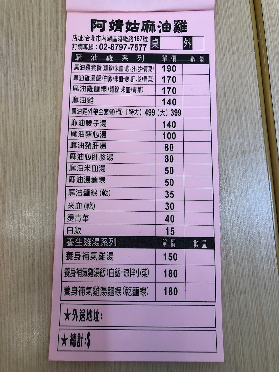 2024最新在地推薦餐廳的菜單_阿婧姑麻油雞的菜單、圖片