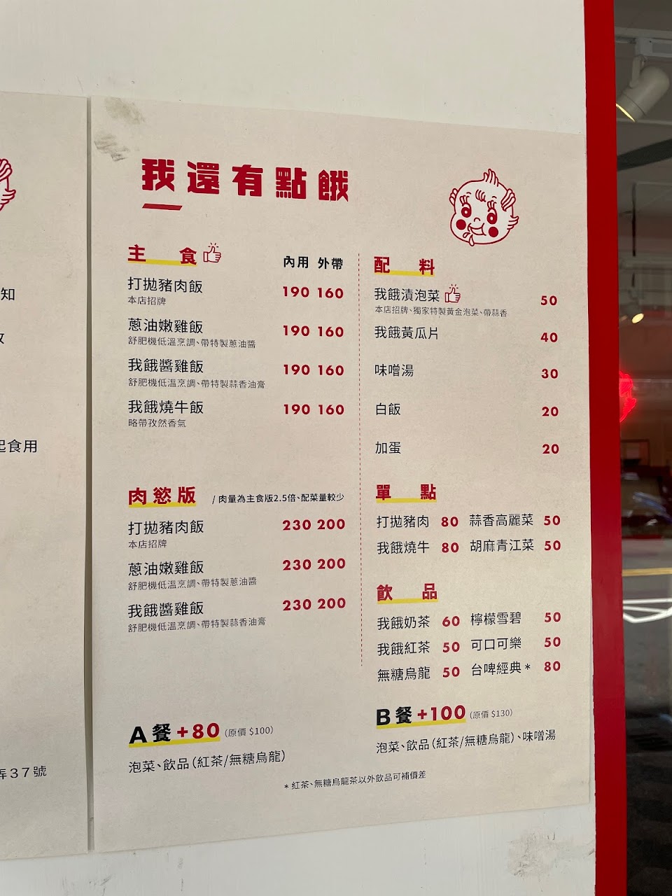 這次點了「我餓醬雞飯」、「我餓燒牛飯」、單點「打拋豬肉」。