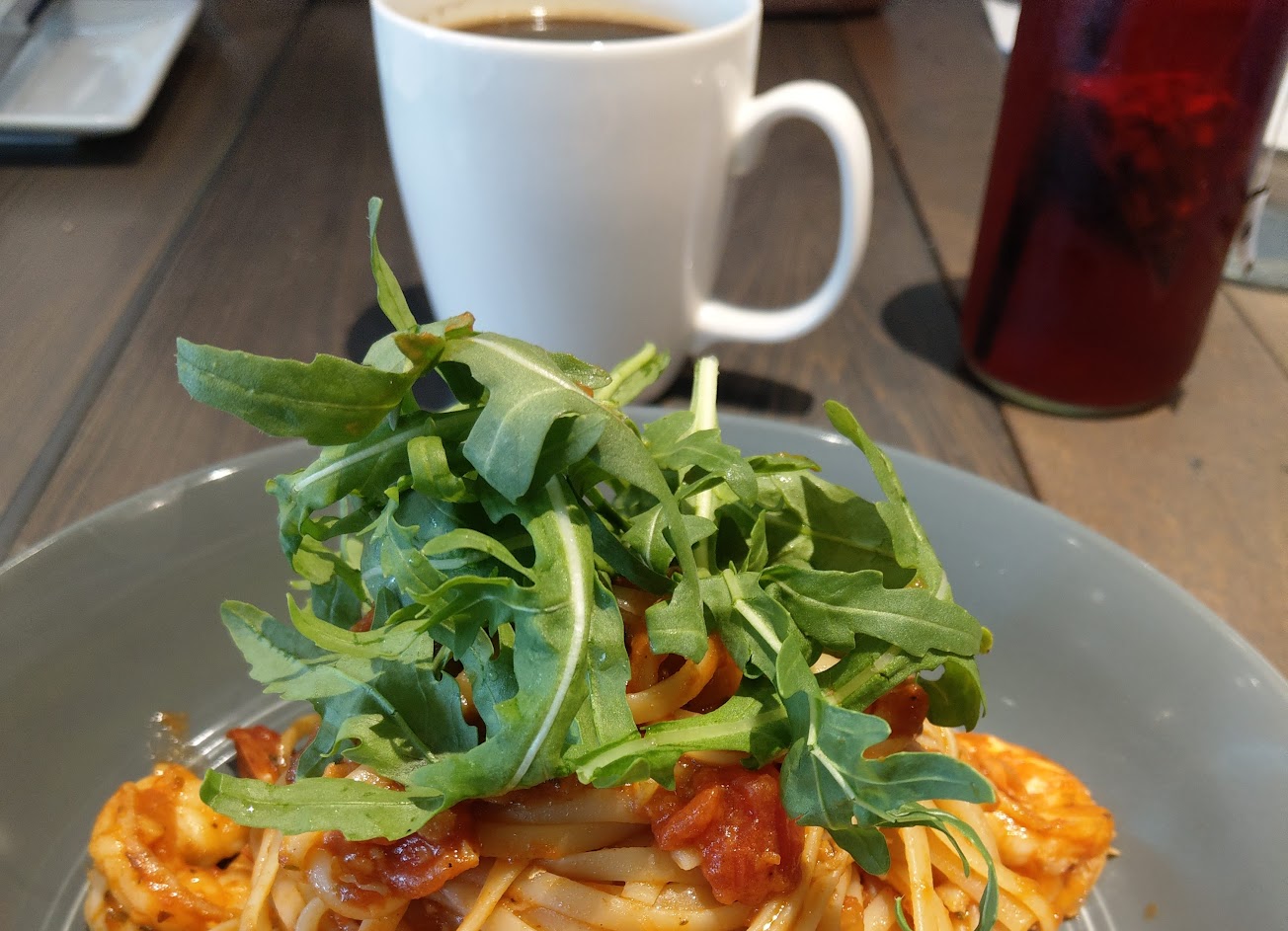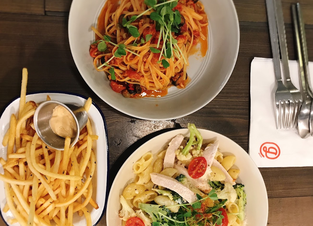 餐點口味不錯,今天點了優格燕麥炸去骨雞腿、亞洲風胡麻雞肉藜麥沙拉、蒜味日曬蕃茄雞肉水管麵、甜菜藍莓汁、熱拿鐵,特別喜歡藜麥沙拉,內容種類很多,也很健康可口。整體來說環境寬敞舒適、食物可口、服務貼心,大推!