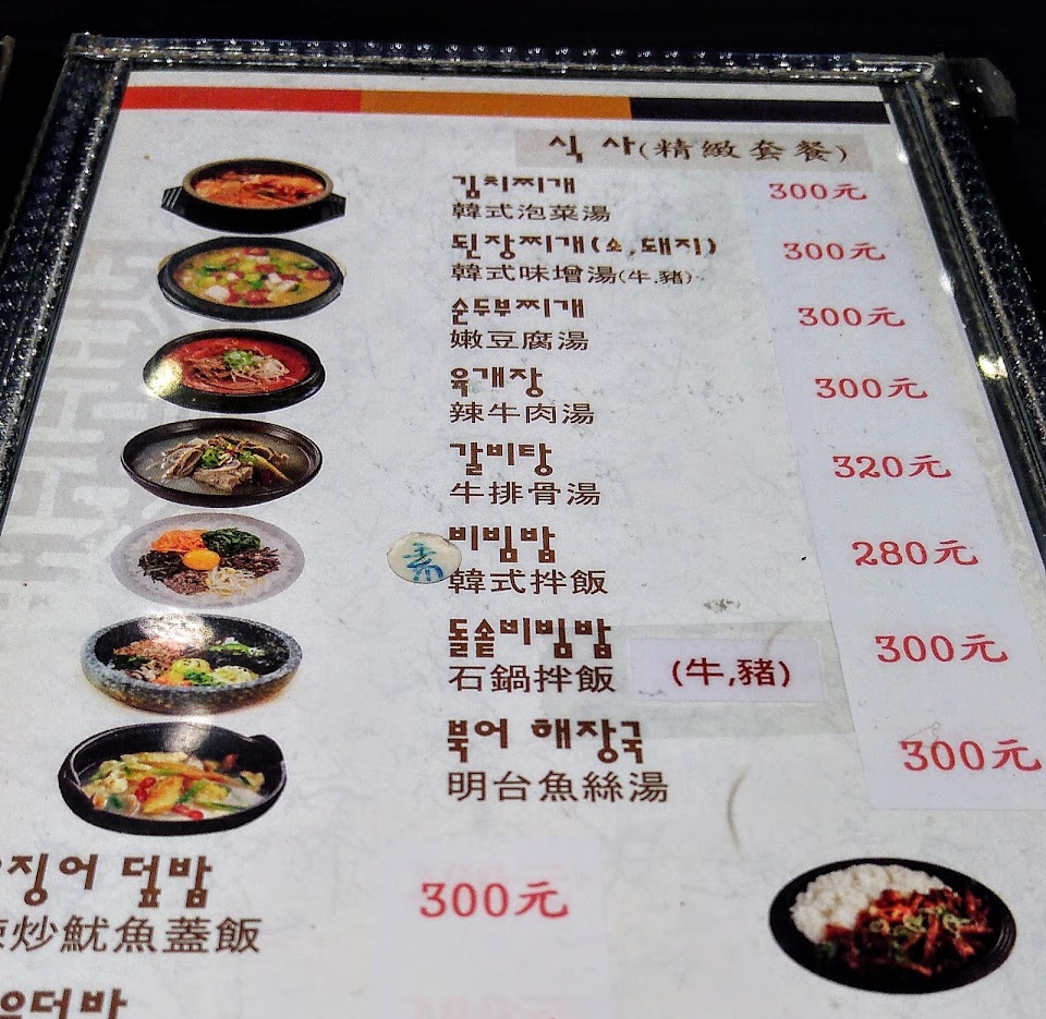 單點飯、麵類價位高 而烤肉、炒雞、鍋類相對cp值較高,口味不錯,小菜樣式不算多,不過泡菜很棒!