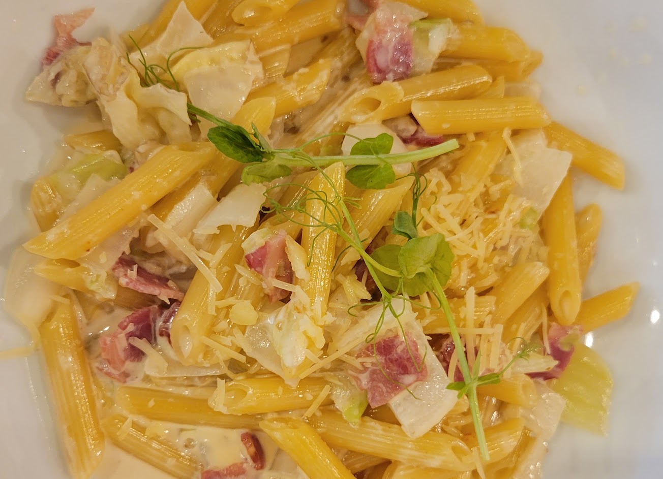寬麵煮的很有嚼勁 彈牙 我個人蠻喜歡的 薯條也很好吃,炸得脆脆又香,不用沾醬就很夠味。