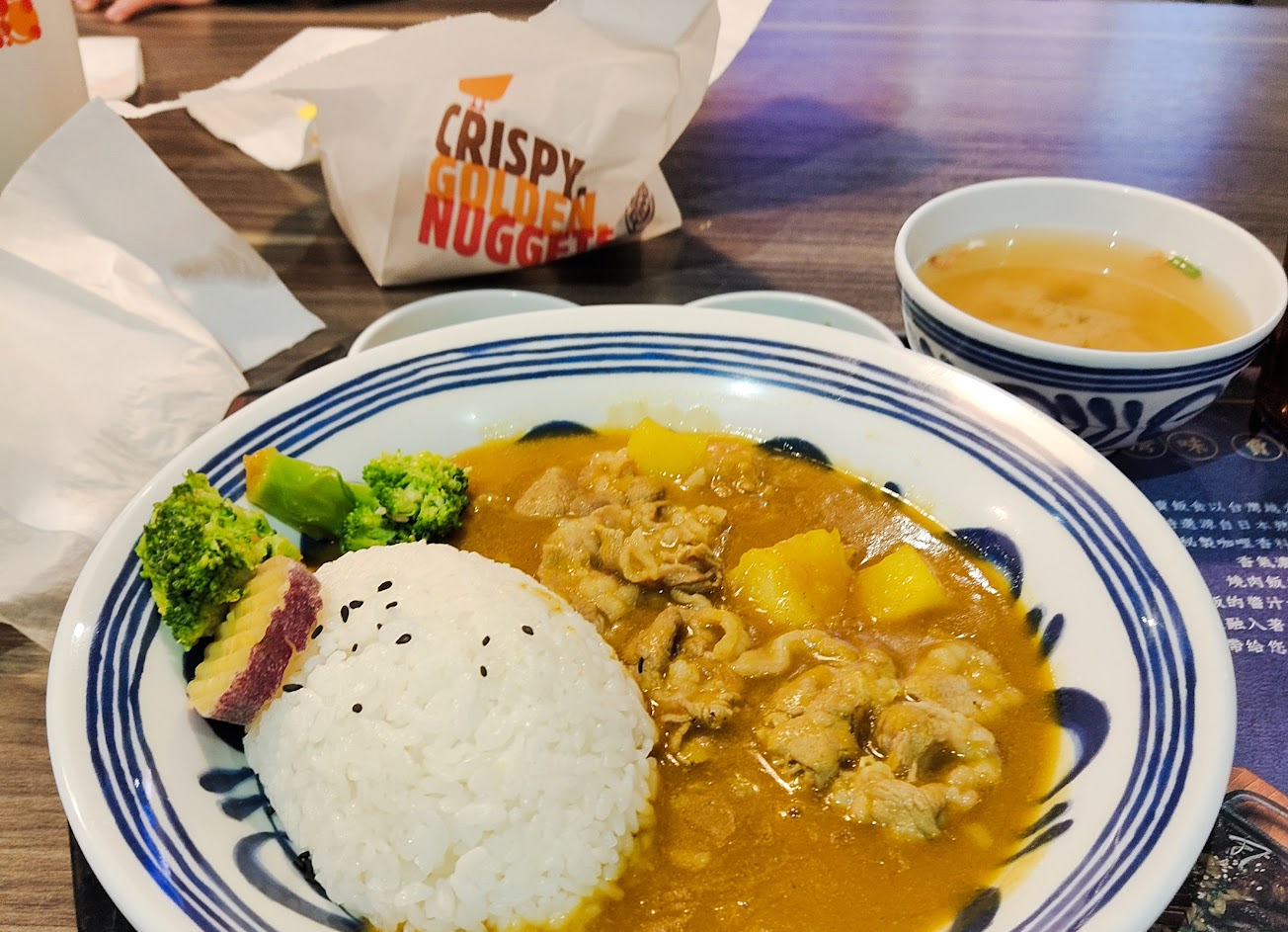 當日點了“賣飯食”的厚切豬排跟牛肉片咖哩飯 還不錯吃