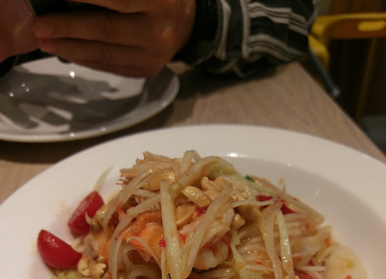 內湖cp值高的泰式料理平價餐廳。 點的是雙人套餐,我記得兩人共400初。有三道菜跟飯及兩杯泰式奶茶,後來我們有加點摩摩喳喳跟榴槤冰淇淋。 青木瓜絲還不錯吃,椒麻雞配飯很下飯。 蝦醬高麗菜也不錯。 摩摩喳喳表現一般,但榴槤冰淇淋很好吃,喜歡吃榴槤的人可以考慮點來吃。