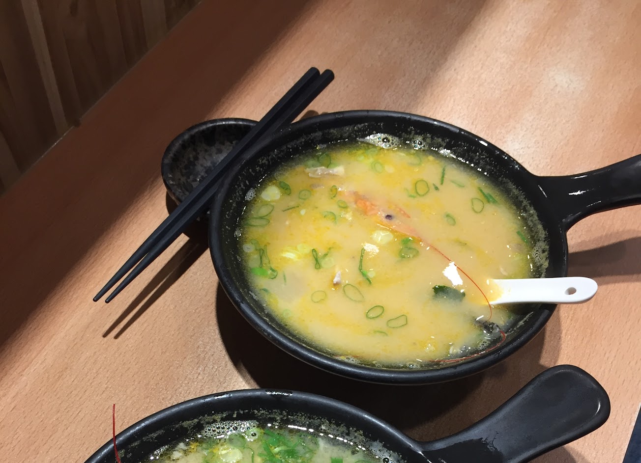 有現煮味噌湯附蝦頭 還可以加湯 是重新再煮一個熱湯給你。生魚片蓋飯cp值很好。食物新鮮。
