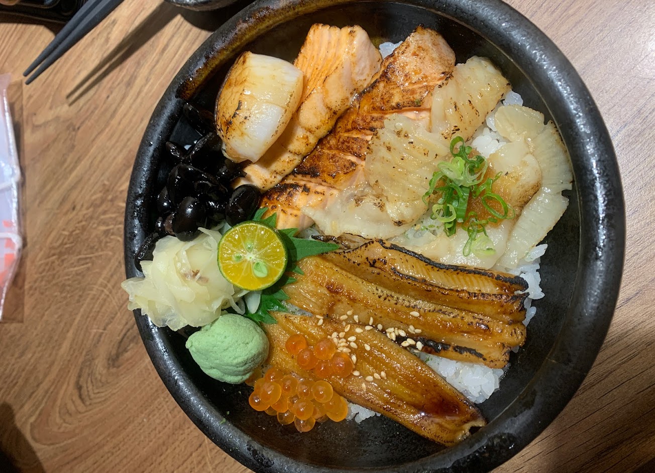小而美的日式丼飯,對於不好生食的我,半生熟炙燒鮭魚出乎意外的好吃;握壽司上生魚片新鮮滑嫩有一定水準皆無雷,炙燒類仍值得稱讚;最驚豔的是皆附上現場ㄧ碗碗再煮沸的味噌湯,蝦頭、魚塊、蛤仔、蘿蔔、誠意滿滿。