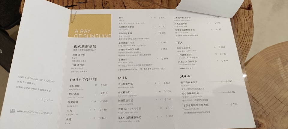 2024最新在地推薦餐廳的菜單_AROS COFFEE 一縷光的菜單、圖片