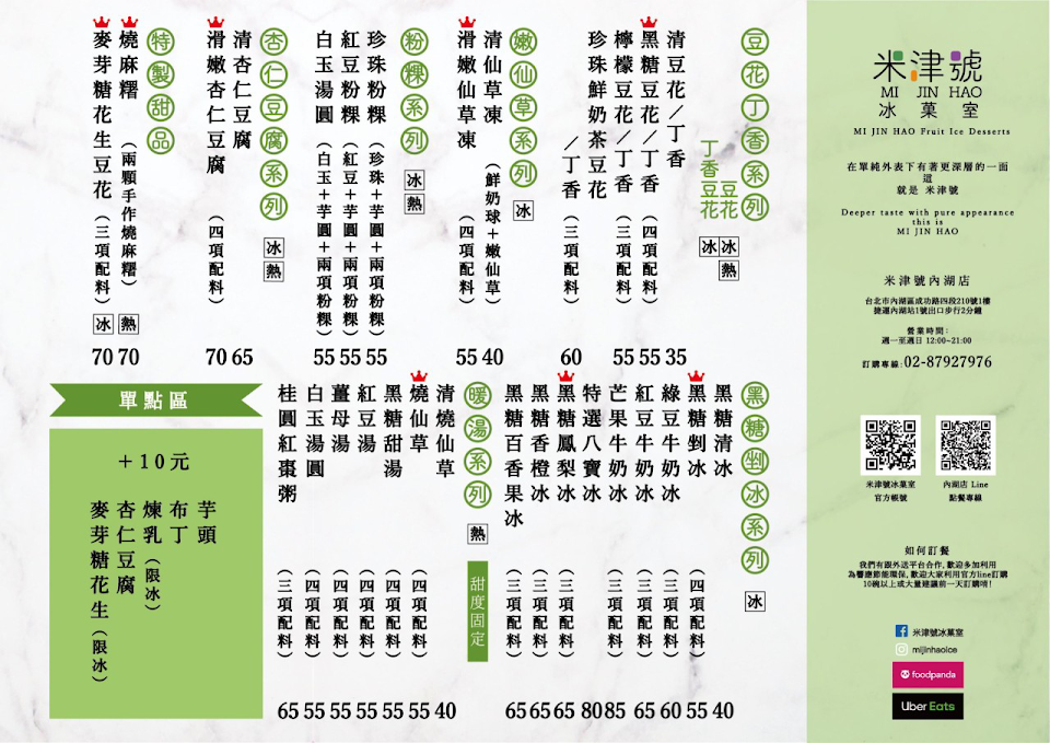 2024最新在地推薦餐廳的菜單_米津號冰菓室 成功內湖店的菜單、圖片