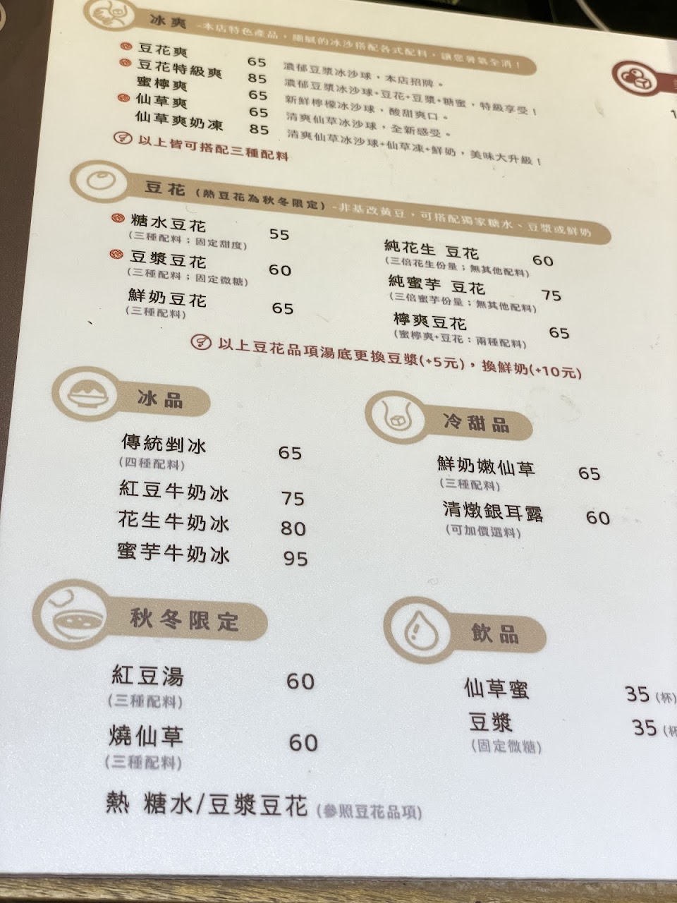 豆漿豆花甜度剛好,配料選擇很多也很新鮮,份量很足夠,會想常常來吃!