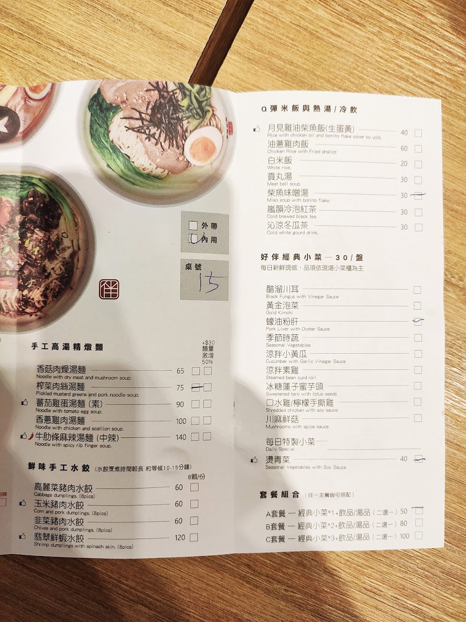 看google 評論4.7分來的,不知道是不是因為評5星友送紅茶,很多人是亂點的嗎?今日點了外婆伴麵、海鮮麵、番茄雞蛋麵、小菜是小黃瓜、素雞,外婆伴麵很香,一端上來我馬上聞到香氣,吃了一口伴醬得豆干,很夠味,海鮮麵沙茶味好重,配料有白蝦1隻,魚丸2顆、魷魚圈1個、2~3片肉、青菜,這很不海鮮麵,沒有1百多的價值,有+5元換成拉麵,拉麵的麵體不好吃,蕃茄雞蛋麵是孩子吃的,我完全沒吃,就不評論了,小黃瓜味道偏酸,素雞很普通,吃完沒什麼印象了,剛進去這家店門面不錯,但因為是在室內煮麵,坐下來沒幾分鐘,一家四口熱的汗直流,觀察一下店裡有台小冷氣,但不夠涼,店裡還有另二桌客人,後續又來一桌客人後,店員才把大冷氣打開,外面天氣大約36~38度,麵店冷氣不夠涼真的很不舒服,吃到頭昏腦脹。