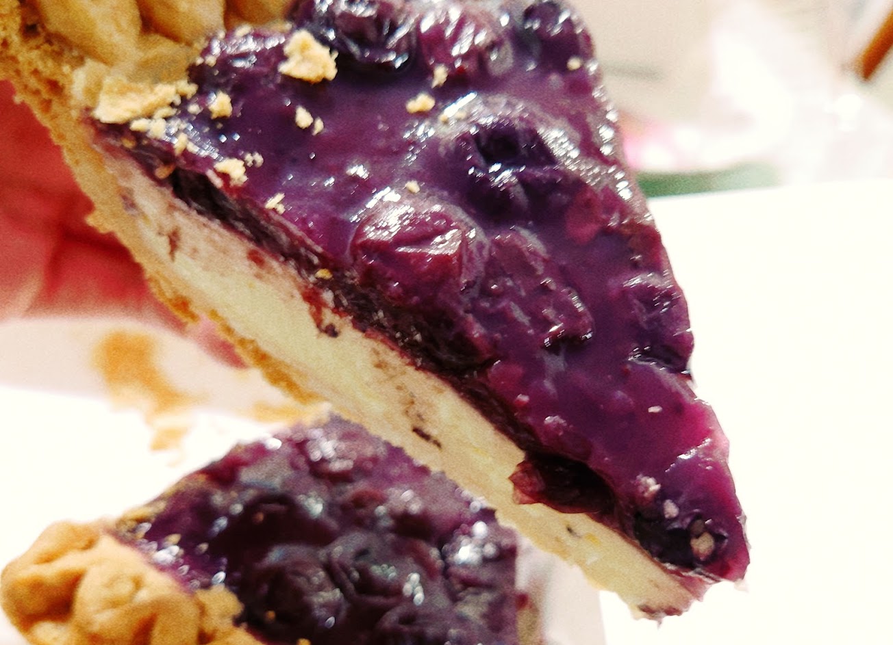 藍莓是我最常買的口味,上層是藍莓果醬,下層是乳酪,藍莓果醬一點都不香精,他的派皮比較乾硬一點,但吃進嘴裡很酥香,搭配上面的料很平衡,藍莓口味很清新不甜膩,我喜歡。