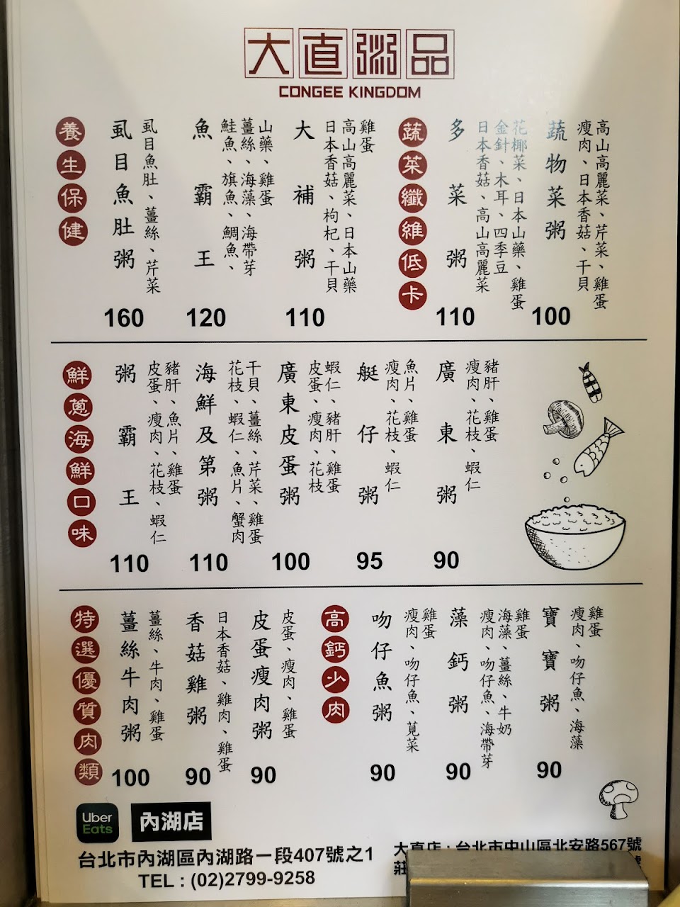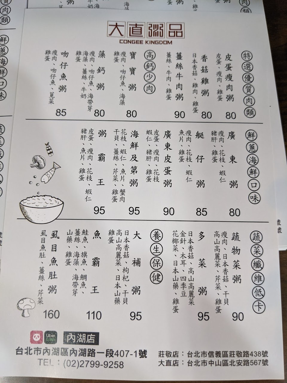 2024最新在地推薦餐廳的菜單_大直粥品 內湖店的菜單、圖片