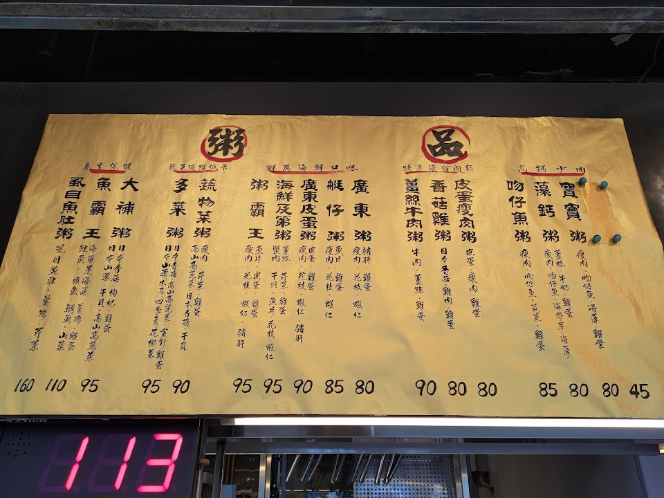 ★關於:這家店出售多種不同種類的粥。每個菜單都有不同的肉類組合。您可以告訴工作人員排除某種肉類。不懂中文的人可以按照我的順序來。