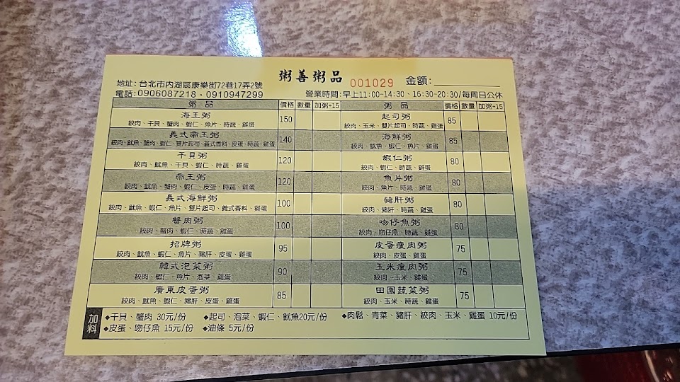 2024最新在地推薦餐廳的菜單_粥善粥品(廣東粥)的菜單、圖片
