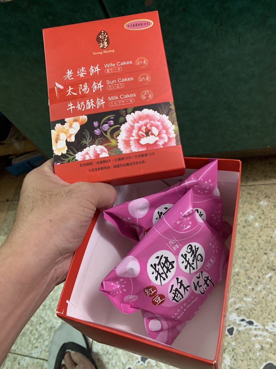 在朋友的推薦下第一次購買,買了太陽餅和牛奶酥餅,太陽餅的餅皮非常酥,內餡柔軟,兩者搭配得非常好;相較之下牛奶酥餅的內餡稍乾,但也是好吃的。必再回購!