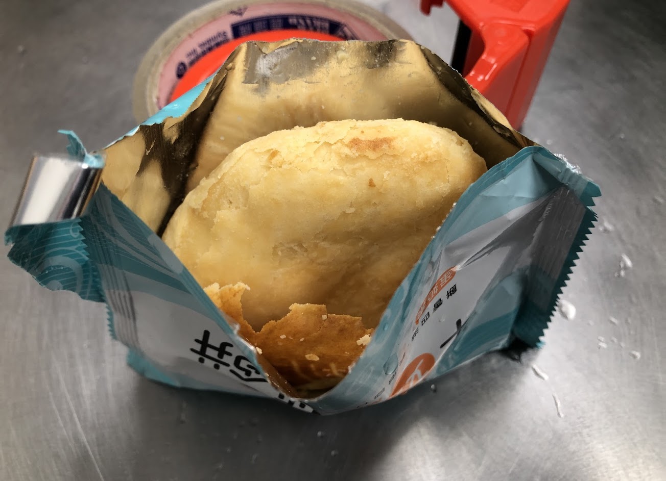老婆餅剛吃的時候比較沒有太明顯的味道~但吃到中間的時候就還蠻香的~不會太甜