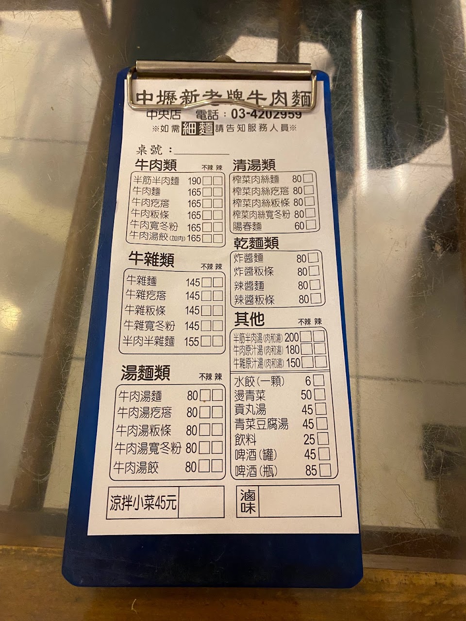 因上班工作臨時肚子餓,看見這間牛肉麵近來吃吃看。我覺得這間牛肉麵算中規中矩。肉有點太硬(牛腱)。湯的味道一般般。我認為整體分數78分。環境乾淨舒服。