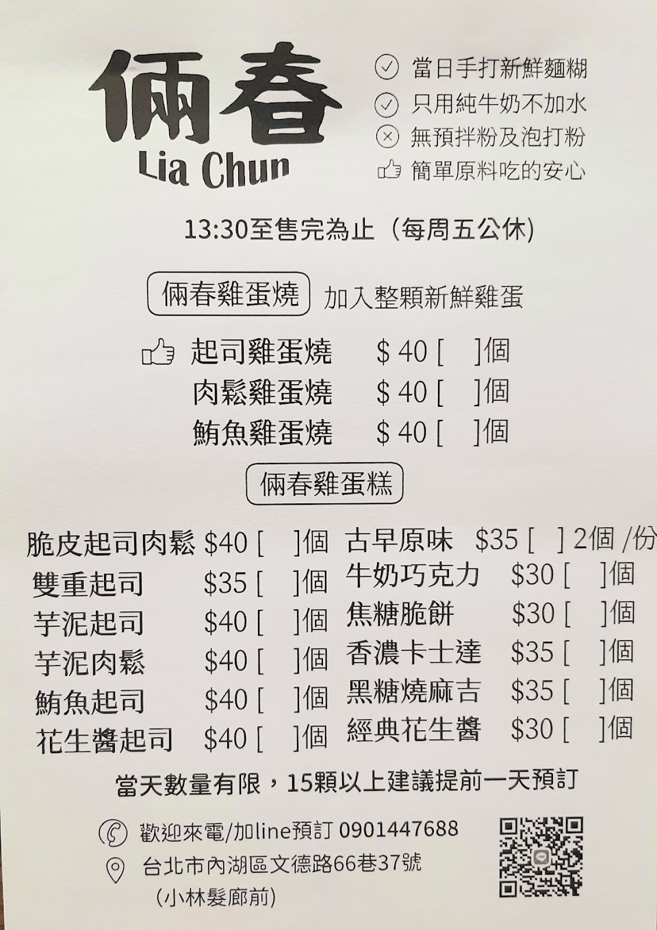 2024最新在地推薦餐廳的菜單_倆春雞蛋燒 雞蛋糕的菜單、圖片