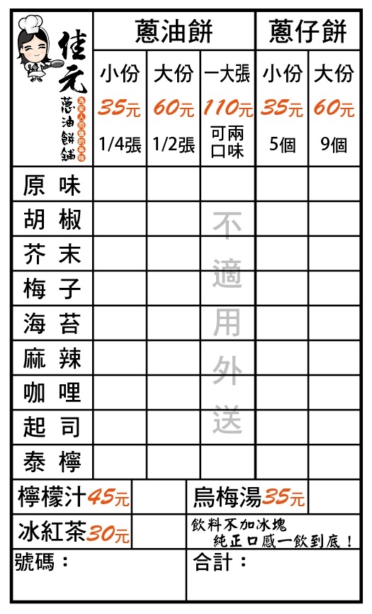 2024最新在地推薦餐廳的菜單_佳元蔥油餅舖(台北內湖店)的菜單、圖片