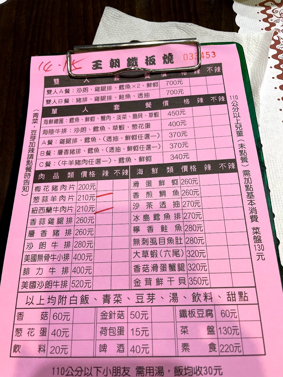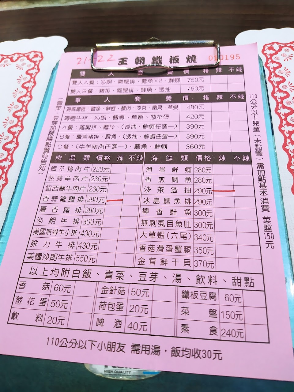 2024最新在地推薦餐廳的菜單_王朝鐵板燒的菜單、圖片