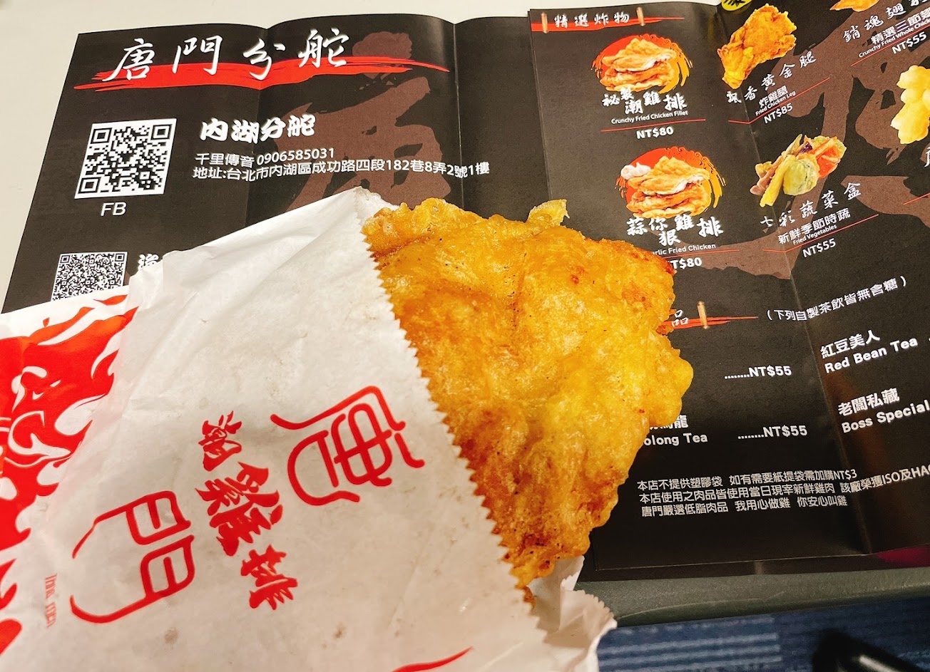 味道獨特,很久沒吃到這麼好吃的雞排啦~~脆皮肉嫩汁也很多。 薯條跟唐果子也不錯唷!值得再來,很開心在內湖站這邊有好吃的雞排啦