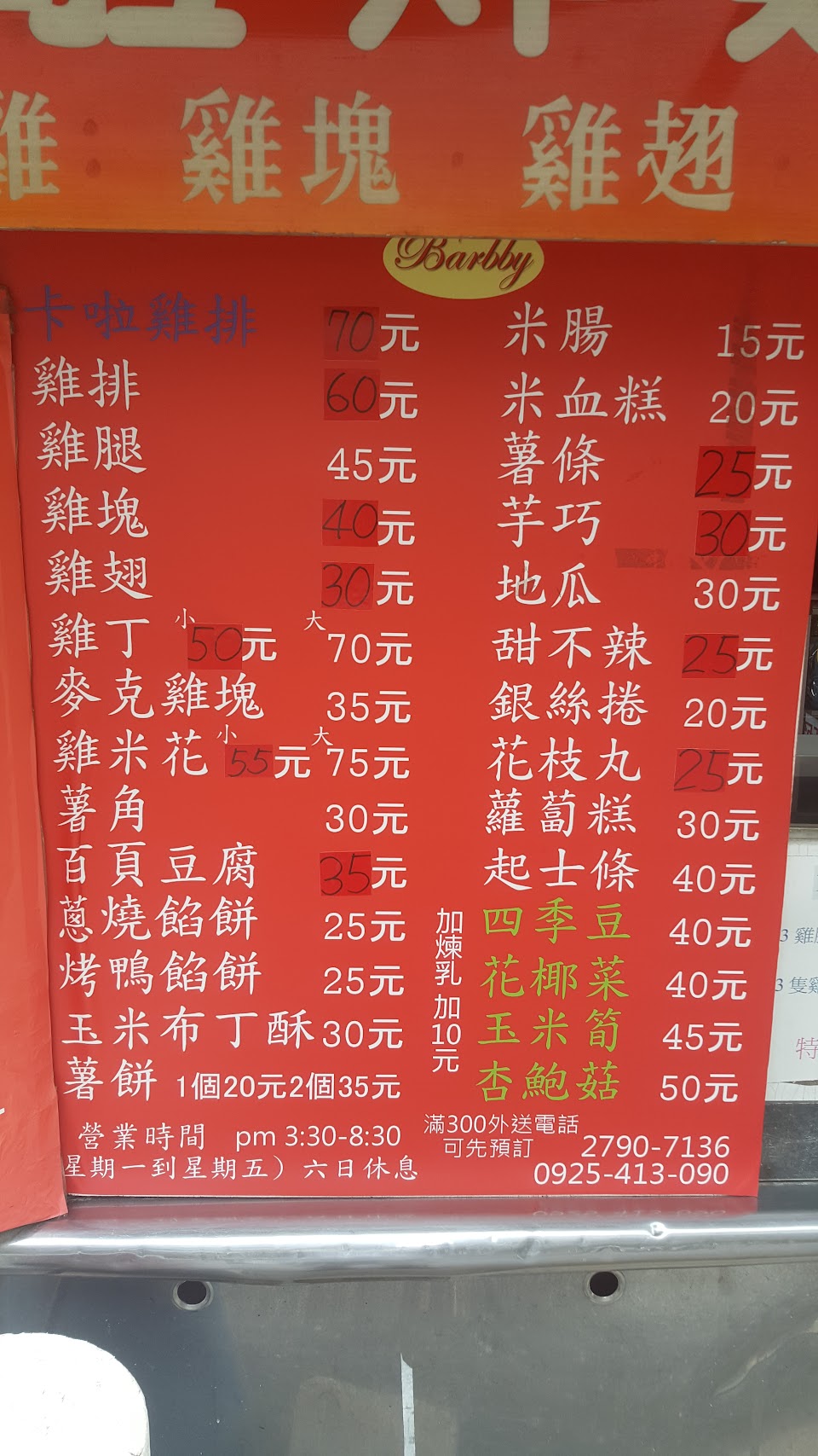 2024最新在地推薦餐廳的菜單_Barbee卡啦炸雞專賣店的菜單、圖片