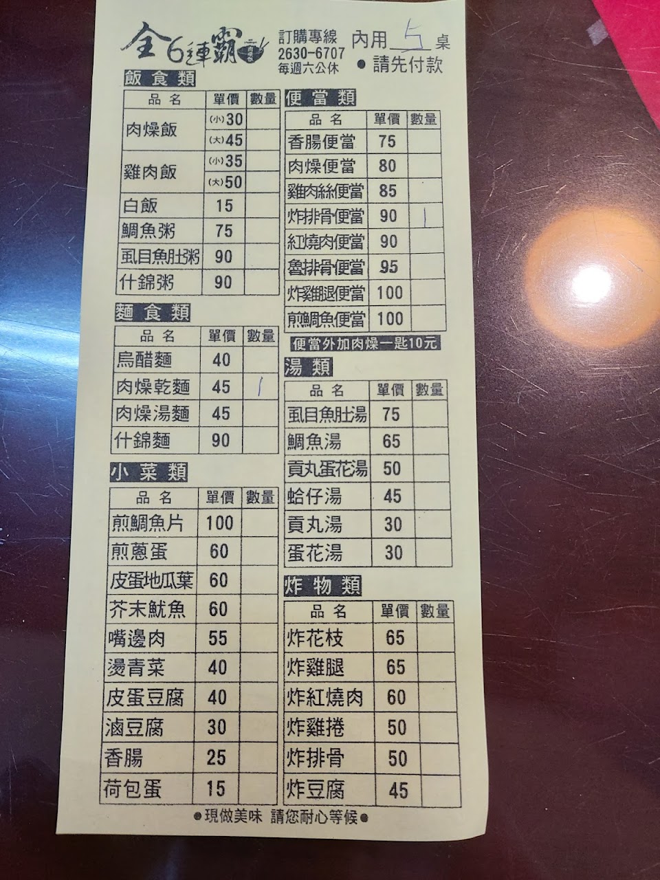 ?菜單主要為各式飯麵、便當、湯類及小菜等。內用先結帳買單,上菜速度快。