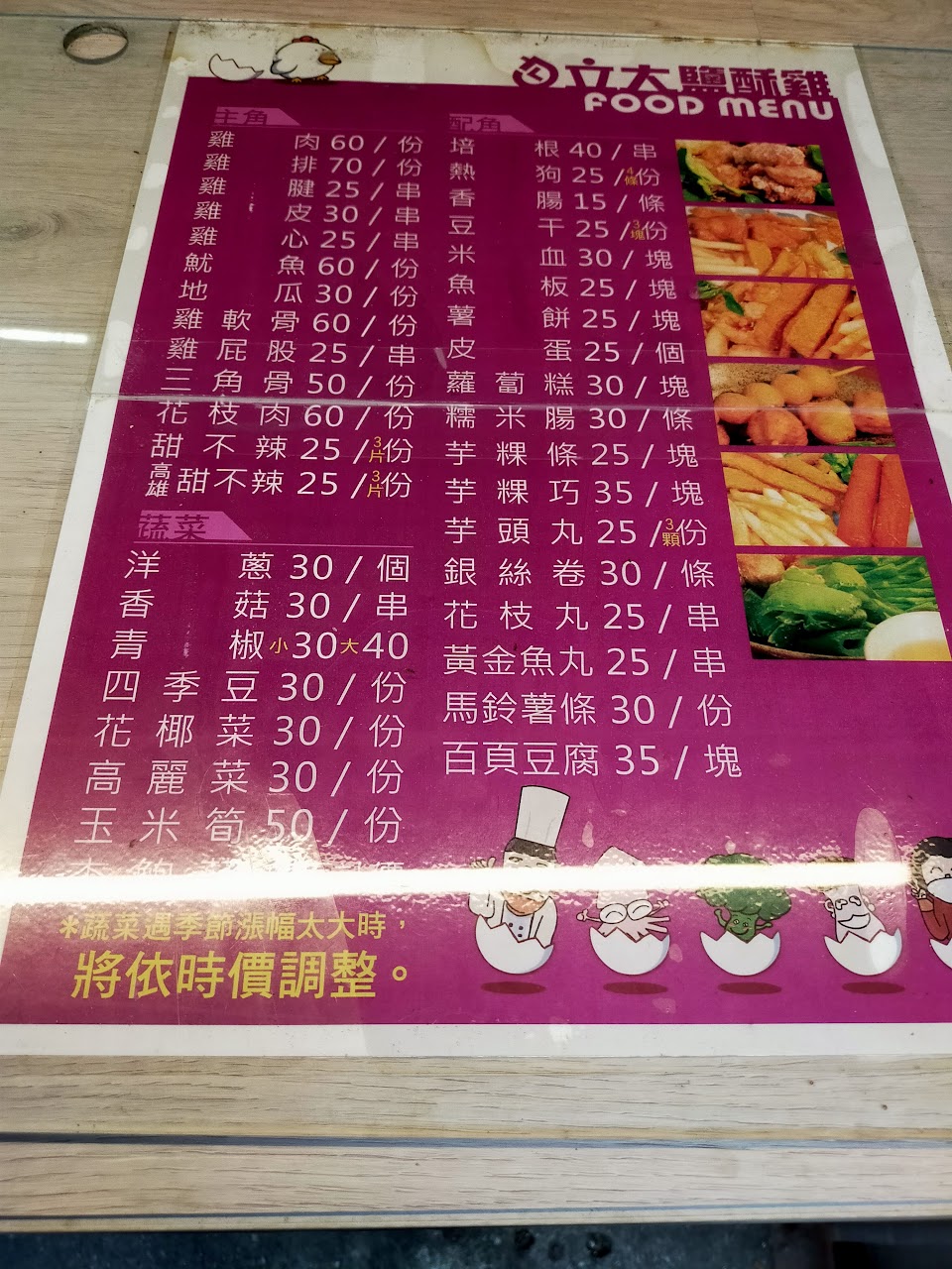 鹹酥雞 60,不錯吃 魷魚60,不錯吃 雞心20,有點乾,比其他地方賣的小滿多的 甜不辣20,不錯 四季豆50,雖然是時價,但賣到50有點太浮誇了吧? 全部東西都塞一袋走兩分鐘就整個濕濕爛爛的了,不過應該也是為了環保所以就算了