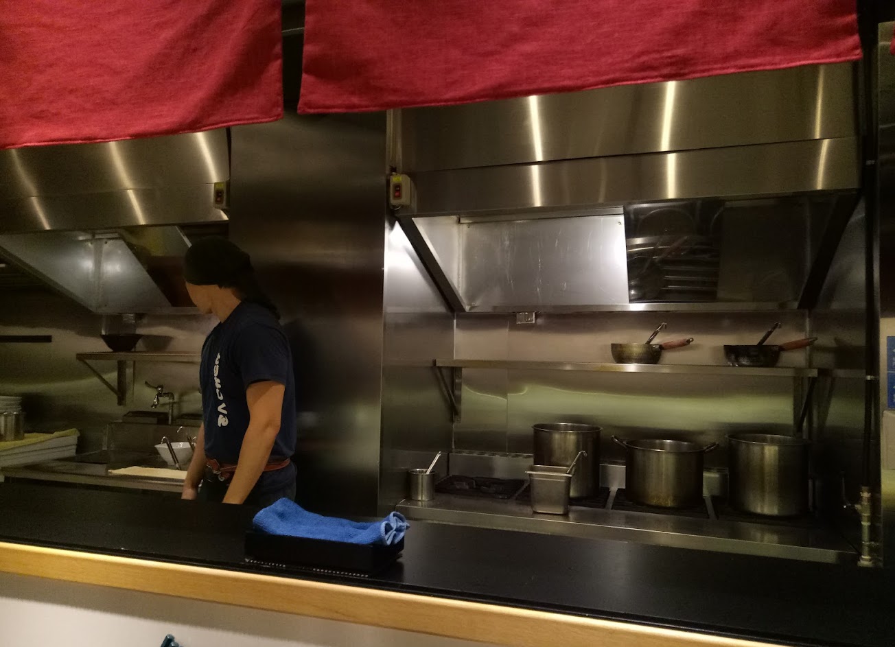 人很多,沒在開店前去排隊的話要有排上20-45分鐘的心理準備。店裡大約十幾個座位,非常的日式風格簡單大方,環境也保持的很乾淨,座位間的間隔算是大,基本上用餐不用覺得擠到兩邊的人,有一點要提一下的是店裡沒洗手間。