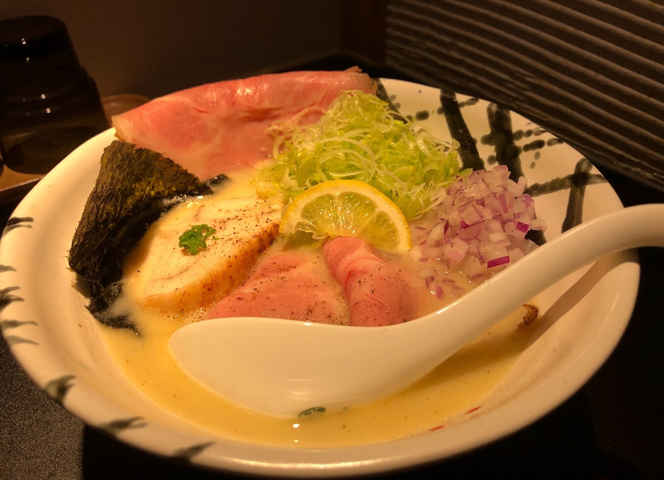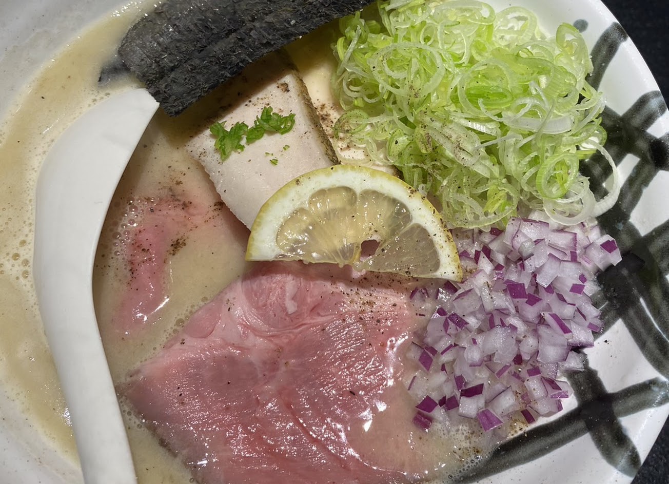 鹽味雞白湯加了紫洋蔥和青蔥…
