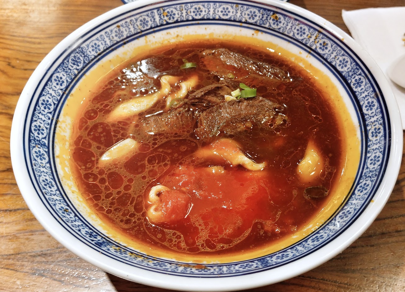 湯頭夠味,牛肉入口滑嫩,很好吃!紅燒湯頭微辣,怕辣的可以吃蕃茄牛腩麵,也是很美味!