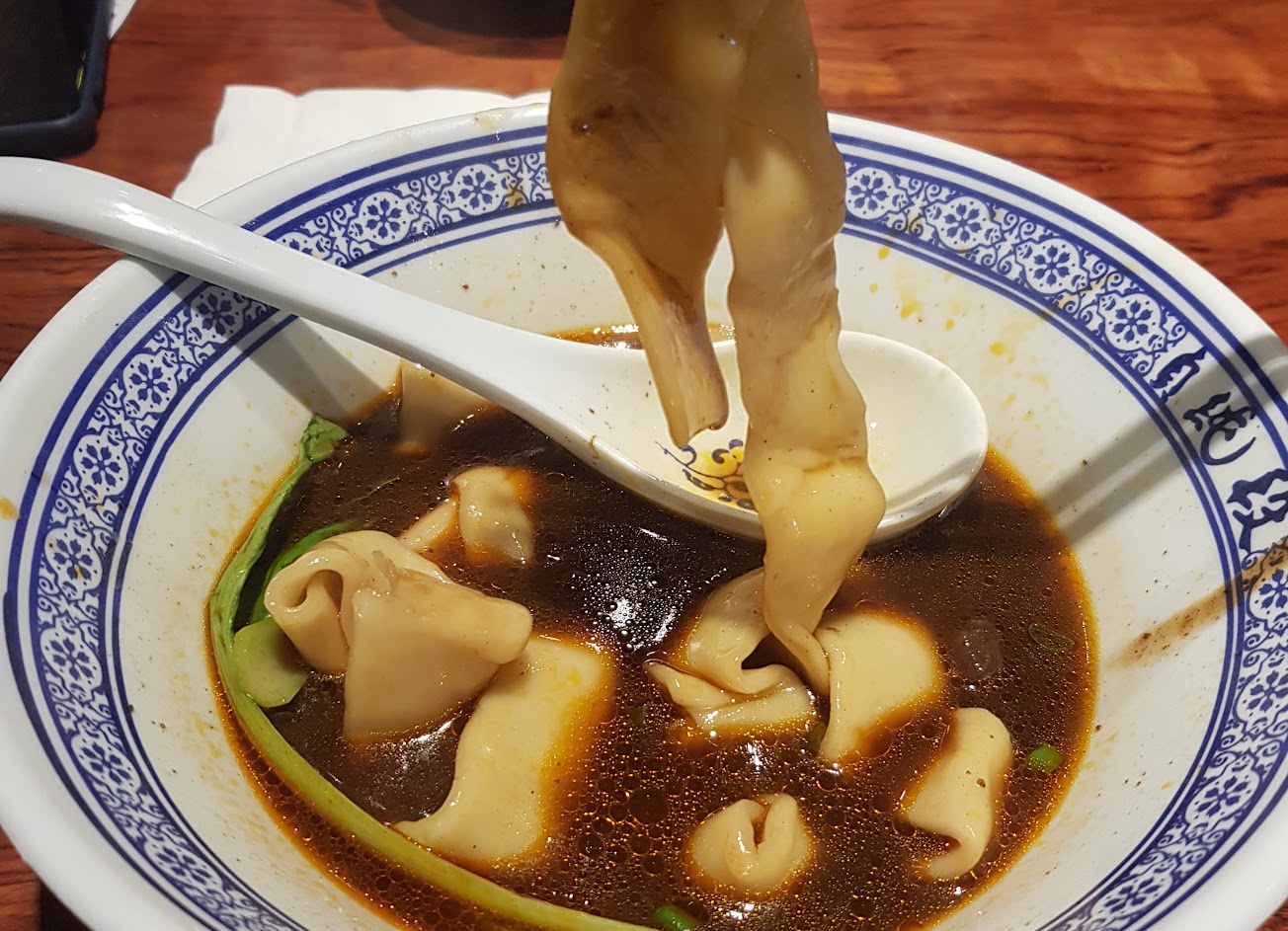 出餐很快,嚐嚐擔擔麵與紅油抄手,香氣奪人,味道與大陸四川成都麵店相仿,很鹹,吃完要趕緊找飲料喝!