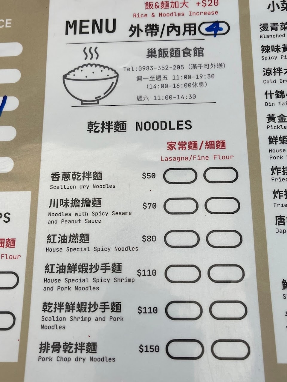 2024最新在地推薦餐廳的菜單_巢飯麵食館的菜單、圖片