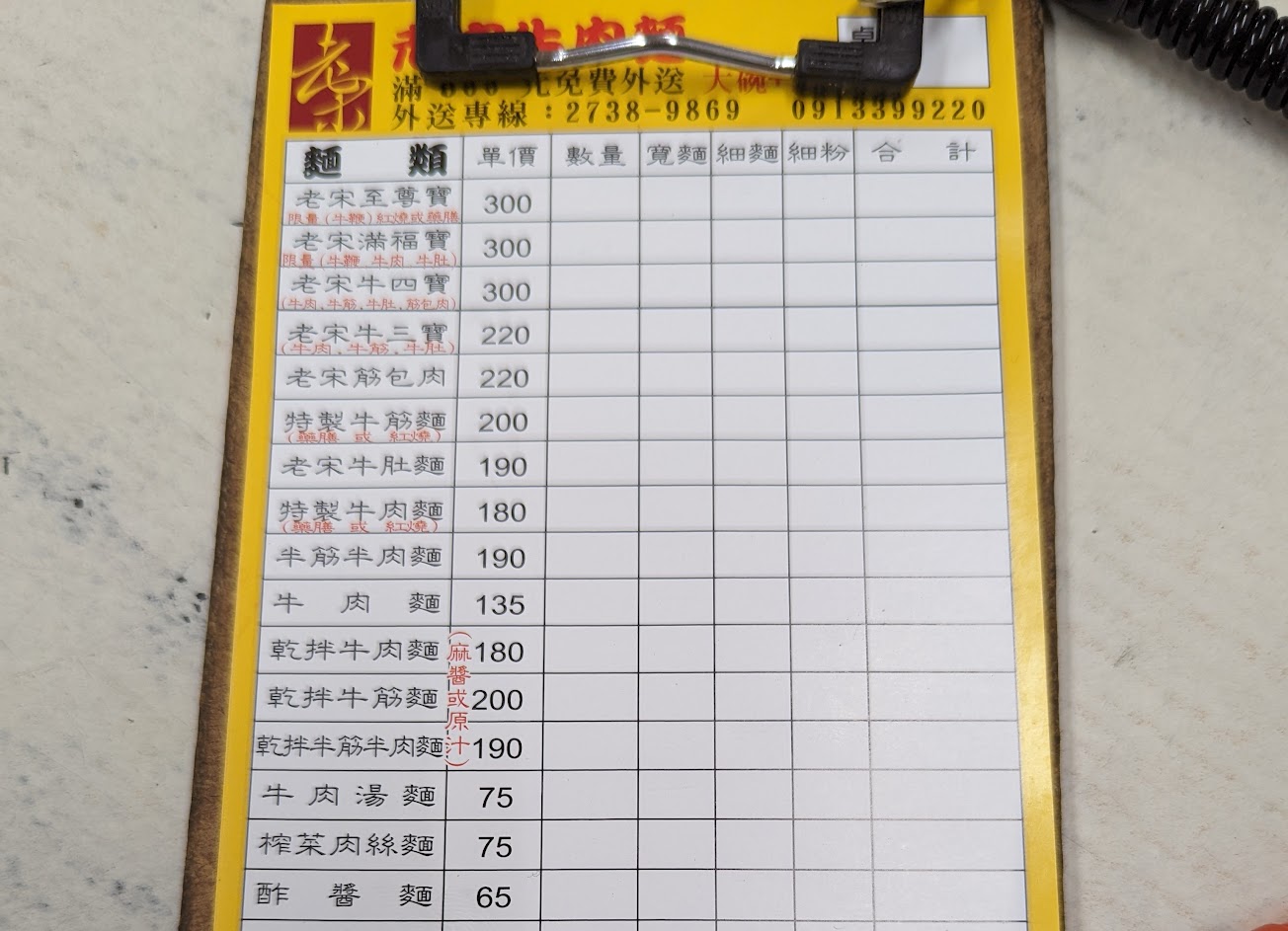 2024最新在地推薦餐廳的菜單_老宋牛肉麵的菜單、圖片