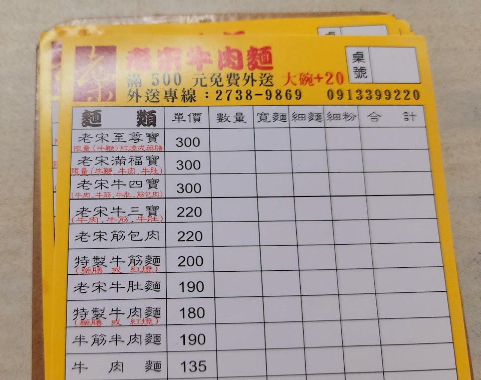 若沒吃過老宋的牛肉麵,絕對是你牛肉麵美食地圖的缺憾~牛嫩噴香,麵Q彈牙~ 服務 內用 餐點類型 午餐