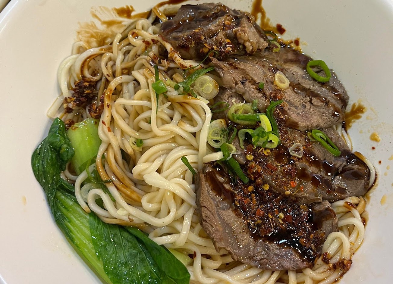 燙青菜新鮮調味清爽,平常不愛鵝白菜沒想到意外很可以。牛肉川拌麵肉很多且大塊