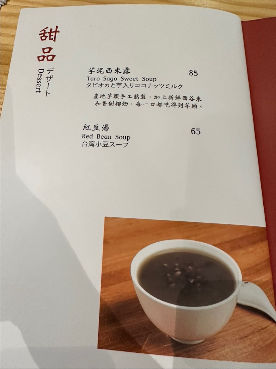 紅豆湯跟芋泥西米露飯後甜點意外的好喝,料都算多紅豆及芋頭綿密好吃。