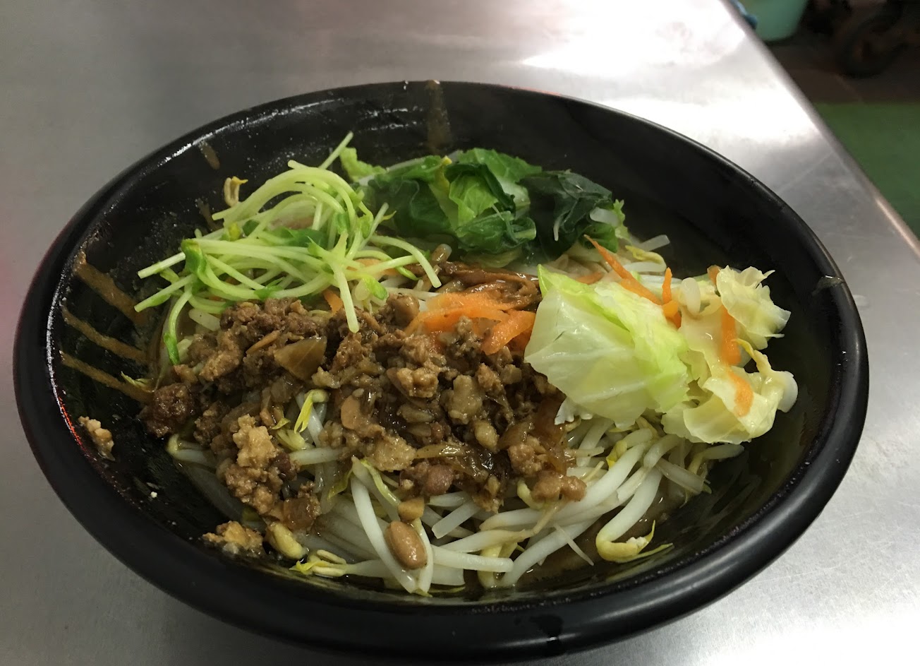 店內老闆播著老歌,享受著老闆的料理手藝,大碗麵份量多,麻醬麵裡有蠻多青菜,另外可以請老闆幫忙加辣椒,很辣? …
