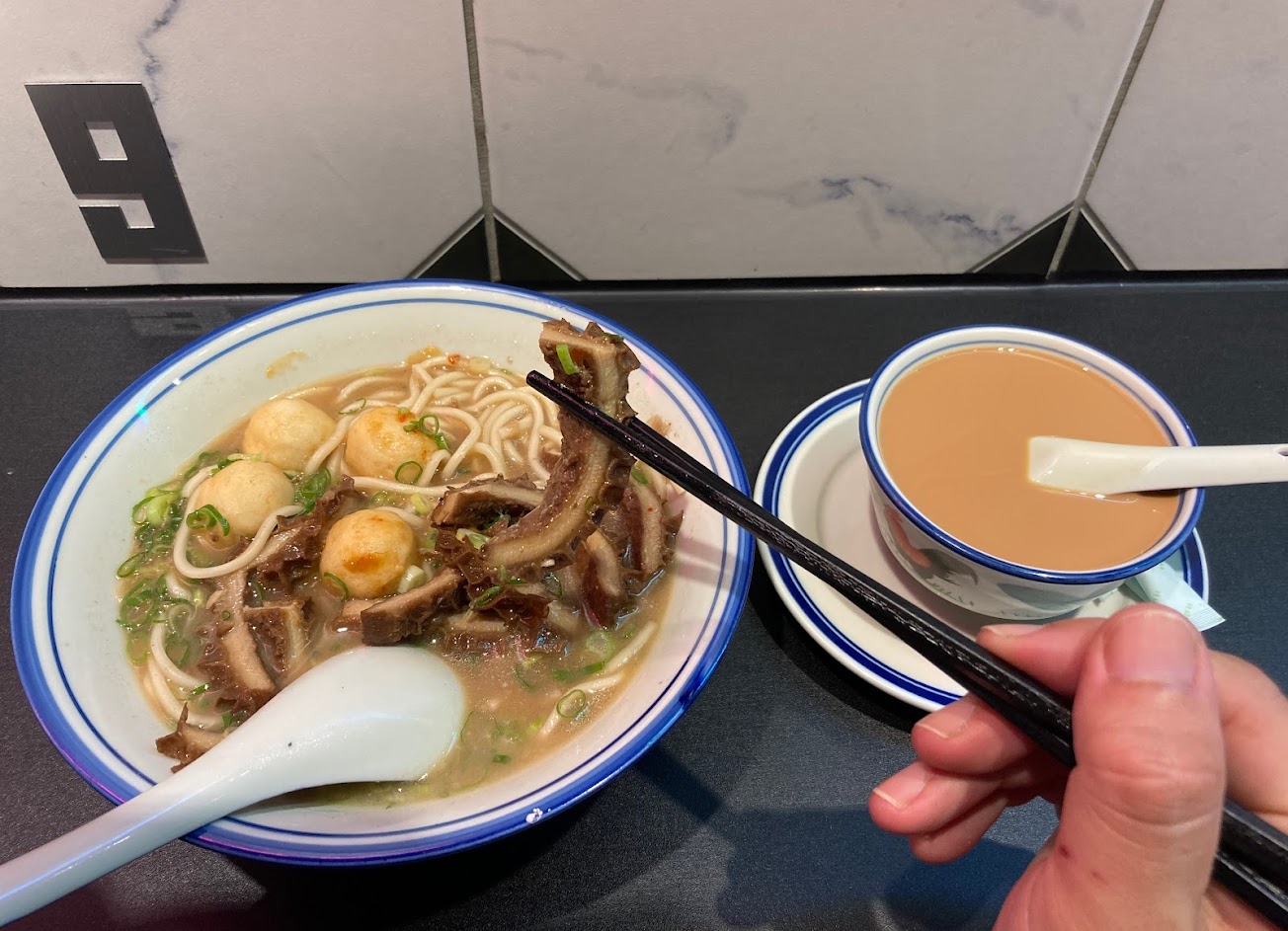 濃郁牛腩湯頭,Q彈魚蛋再加上入味牛肚,太好食了,配上一杯蘭芳園韻味的鴛鴦奶茶,完美? …
