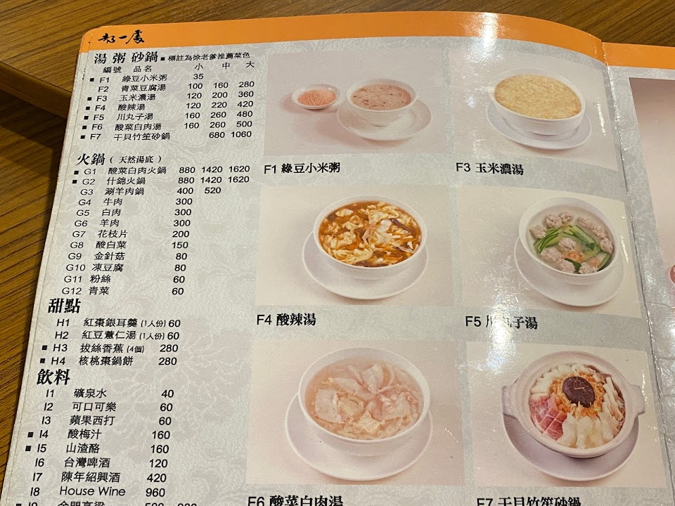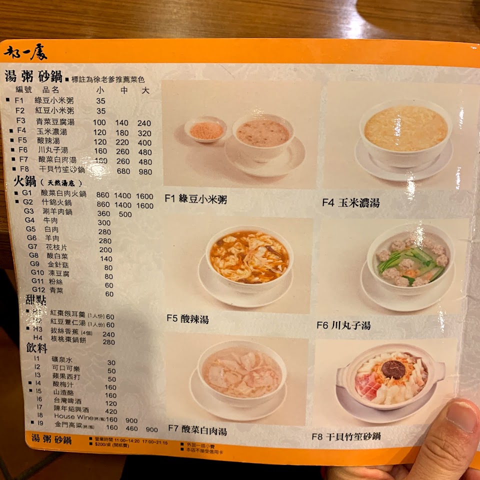 餐點味道不錯,但價格偏高。肥腸、醬肉都魯得香軟,但稍偏甜。白菜心加些花生碎,口感會更好。搭槤就是大鍋貼,覺得小南門的鍋貼更好吃?酸菜白肉鍋不推,醋酸的刺激感明顯,內容物一大半是菜,不優