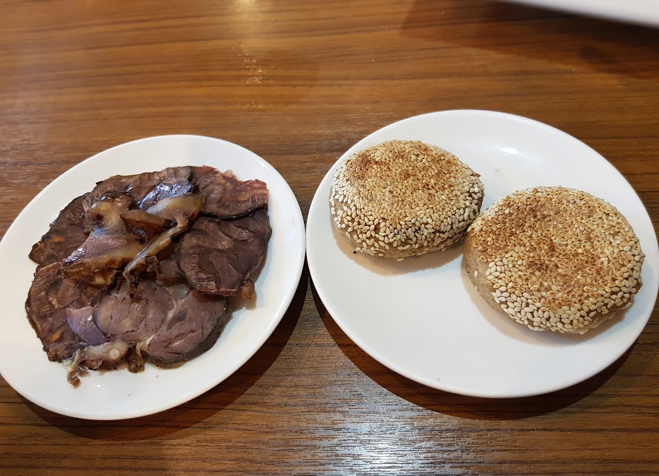 芝麻燒餅配醬肉更是一絕, 特殊的香氣加上炭火烘培,