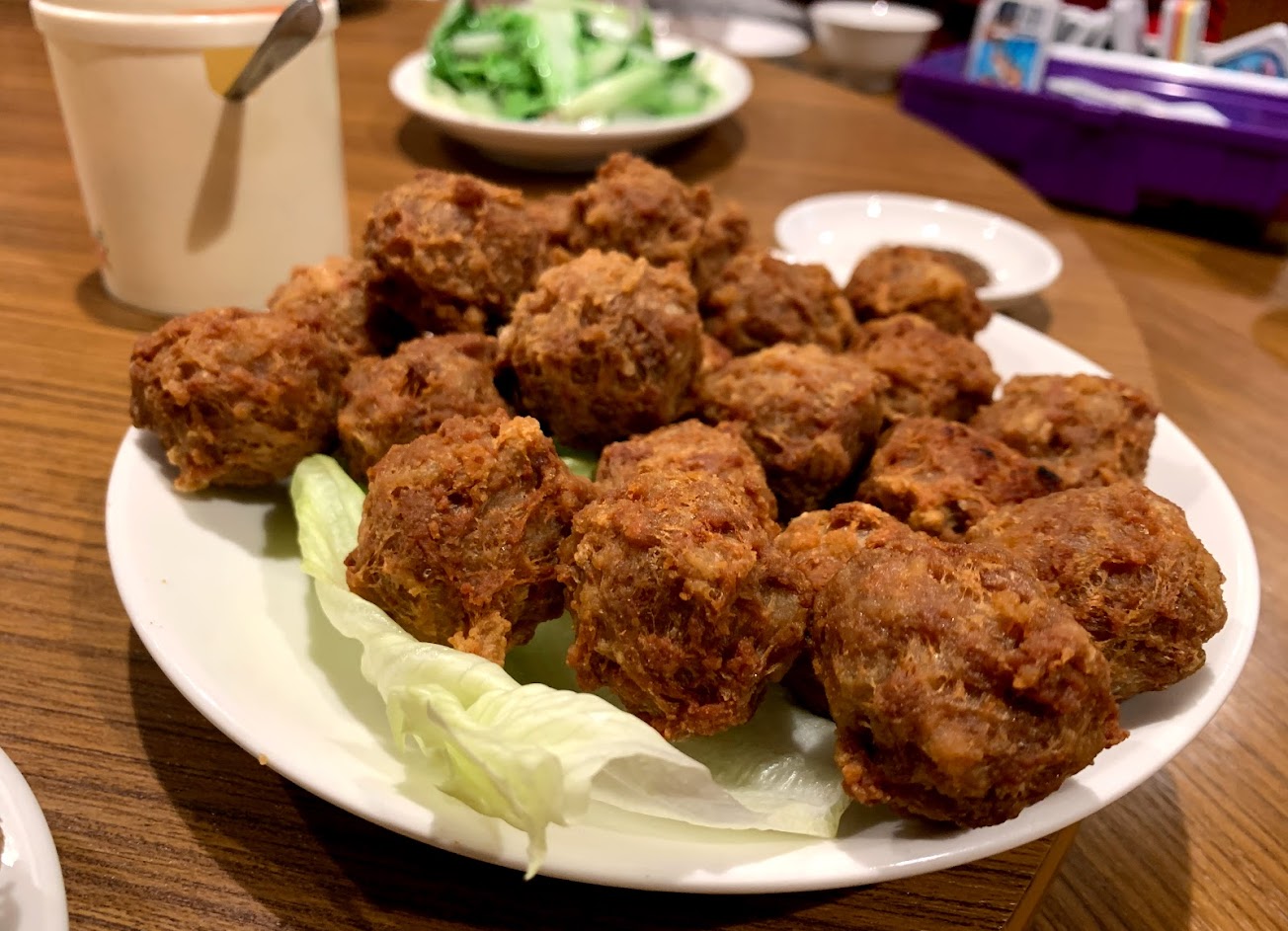 炸丸子:略為焦乾,口感紮實,再丟人火鍋內,吸收湯汁後,更為鮮美。