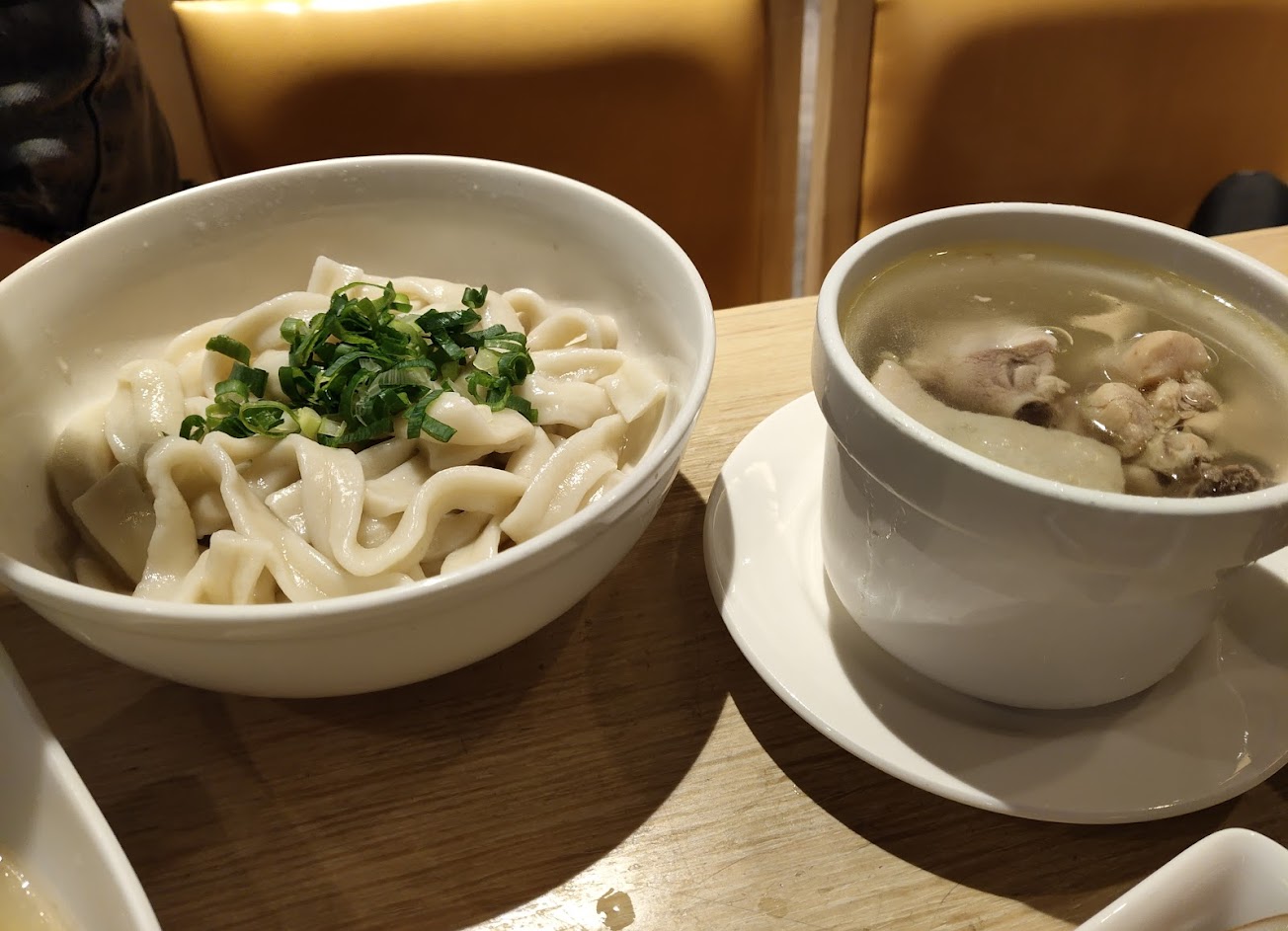 先說感想,推薦外帶餡餅、鍋貼等招牌,因為除了牛肉餡餅是蠻好吃,內餡料、湯汁、外皮,都很到位,若要內用可以選非尖峰時段用餐,座位確實為了爭取最大翻桌覆蓋,所以確實位子比較小些,其他餐點真的不盡人意,牛肉盅湯,肉很柴,泡在湯裡都感覺很乾硬,湯頭感覺就是水+肉煮湯,很雷,完全吃不下去,招牌沙茶刀削麵,口味普通,這道牛肉比較嫩,送上菜時豆芽菜還掛在盤子邊緣,有部分還冷掉了,麵條很硬,整盤味道除了油、不特別好吃,小菜部分,黃金泡菜,一點點辣很好吃、龍鬚菜也是處理的不好,味道也不行,種類倒是很多,琳瑯滿目。