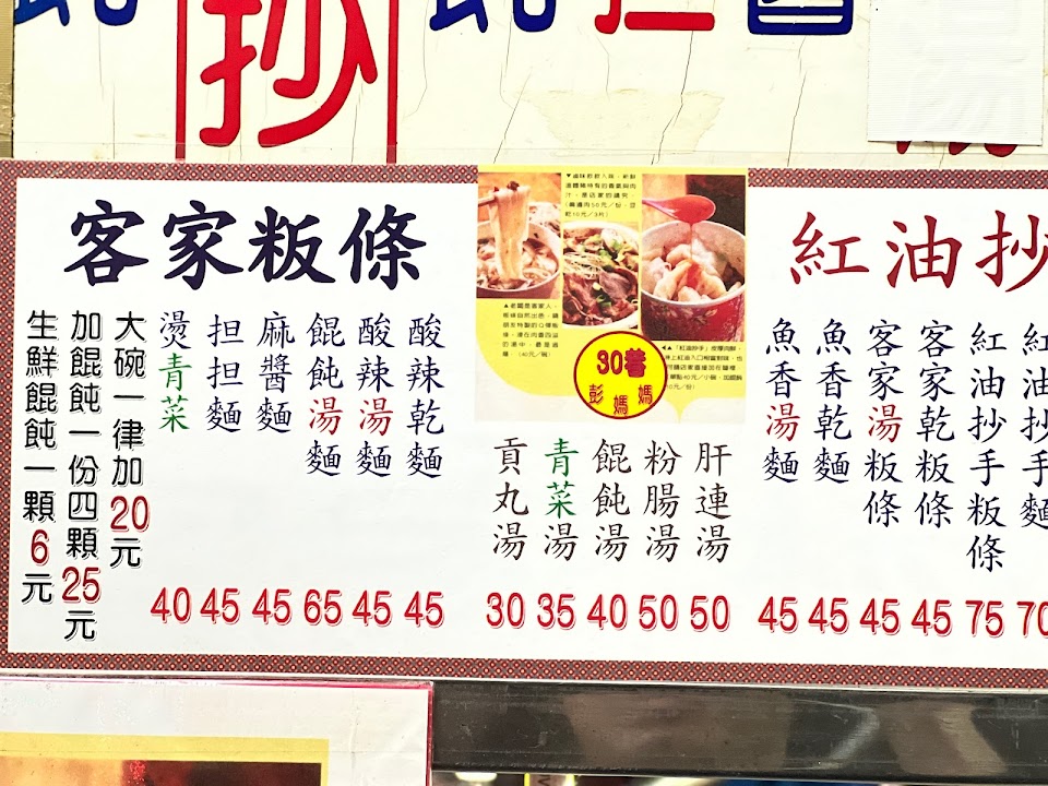 不知道是我認知有問題還是怎麼了,我不認為客家粄條是他們的招牌菜耶?反而幾十年來老爺爺賣的擔擔麵才是主角,包括炒手,從一個神秘的竹筒裡面加一點不知道是什麼的配方進去,那種帶著微酸微辣的味道,才是這家最大的特色。
