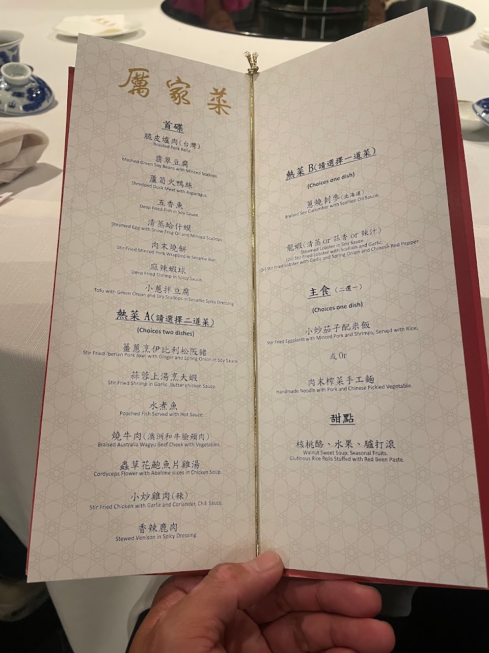 當天熱菜選了金勾烹蝦球、枸杞百合時蔬鮮干貝、清蒸梭油魚、燒牛肉、蟲草花鮑魚片雞湯、蒜香龍蝦,龍蝦是半隻波士頓龍蝦,燒牛肉是牛頰,肉質相當軟嫩,其他的味道也都不錯。