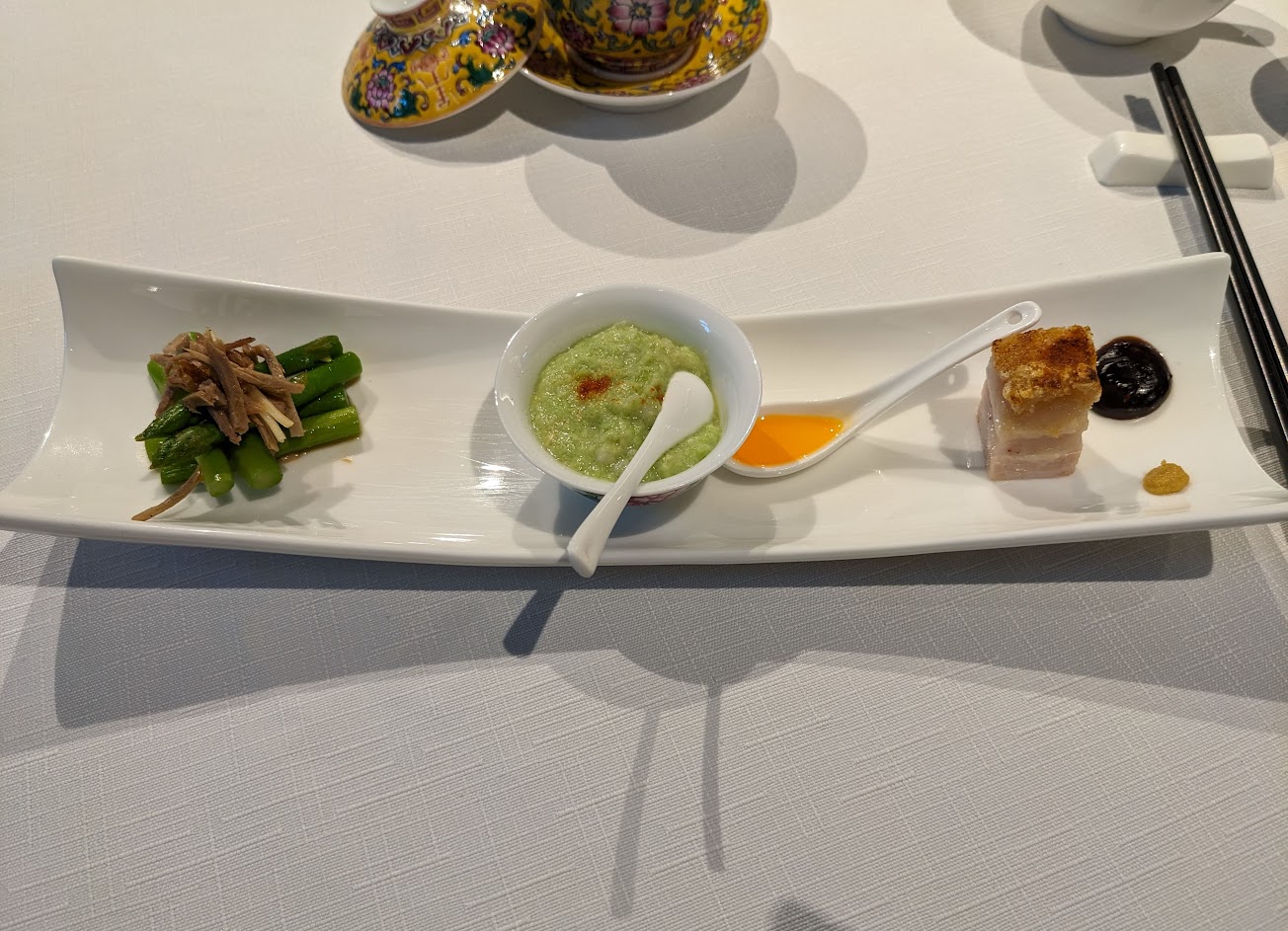 獨特的一家中餐廳。如西式米其林般的 tasting menu,小菜菜色種類多,小口,但味道濃縮美味。最有特色的也就是前面那幾道才。多道菜色是別處沒吃過的。感覺菜單不常變就是了。